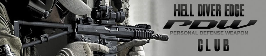 KAC・PDW ナイツ・アーマメント社が開発した6x35mm弾を使用する個人防衛火器。 (そもそも「PDW」とはサブマシンガンとアサルトライフルの中間に位置するカテゴリー名である。) このKAC・PDWの電動ガンオーナーが、なぜかEDGE内で急増(笑) 「PDW友の会」なる非公式集団が結成されたwww 鉄の掟は、銃に名前を付ける事!・・・らしい(笑)