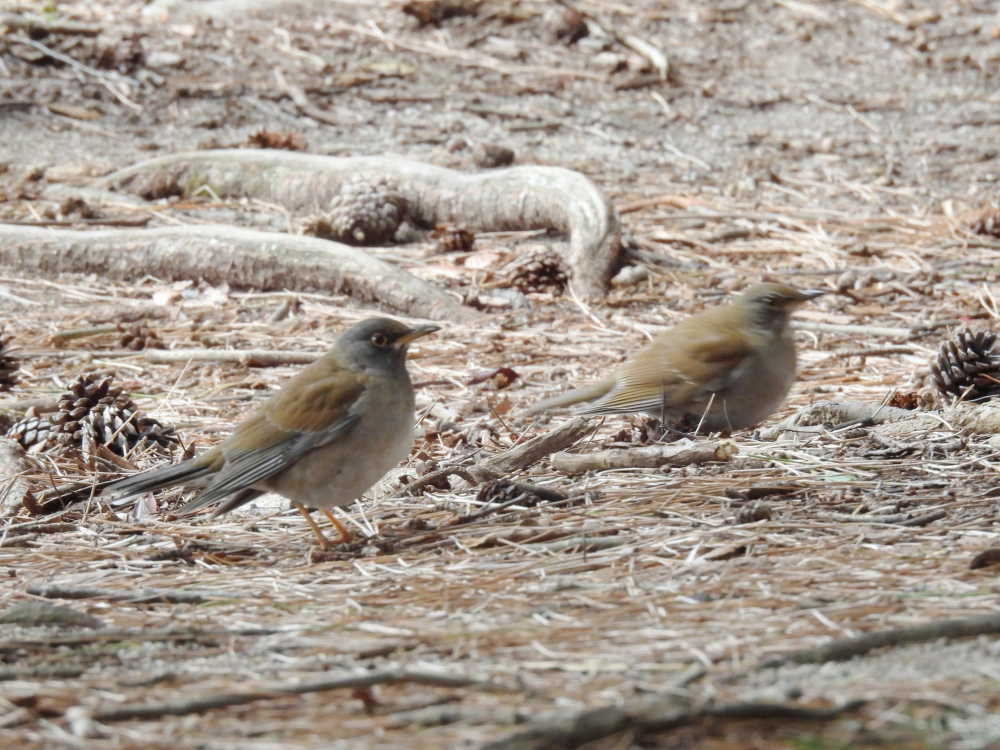 食べ物がなくなってきたのか、地面に下りて、シロハラと一緒に食べ物を探している子もいました。