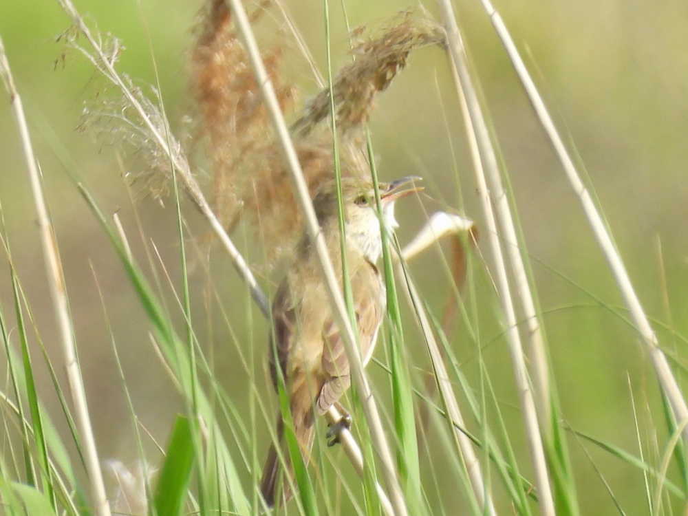 久しぶりに今津に行くと、葦にとまってオオヨシキリが囀っていました。