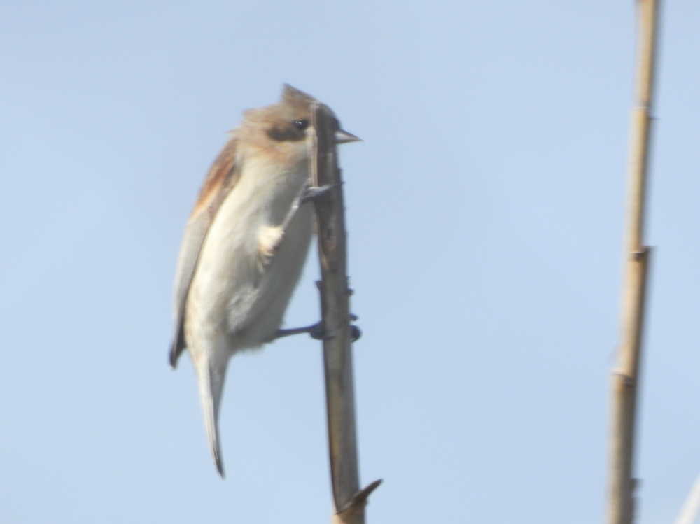 二つ池の裏の葦原では10羽強のツリスガラの群れが飛び回っていました。