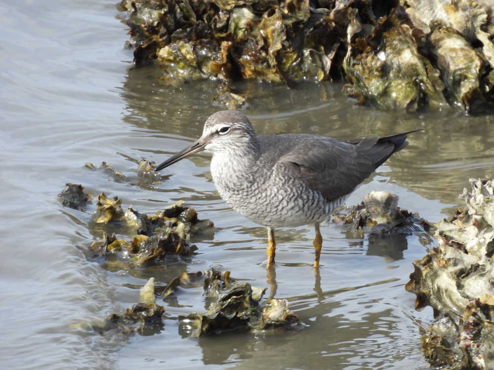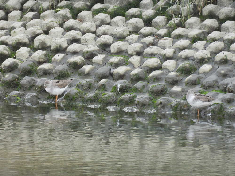 干潟沿いの道を歩いていくと、キアシシギ2羽に会えました。