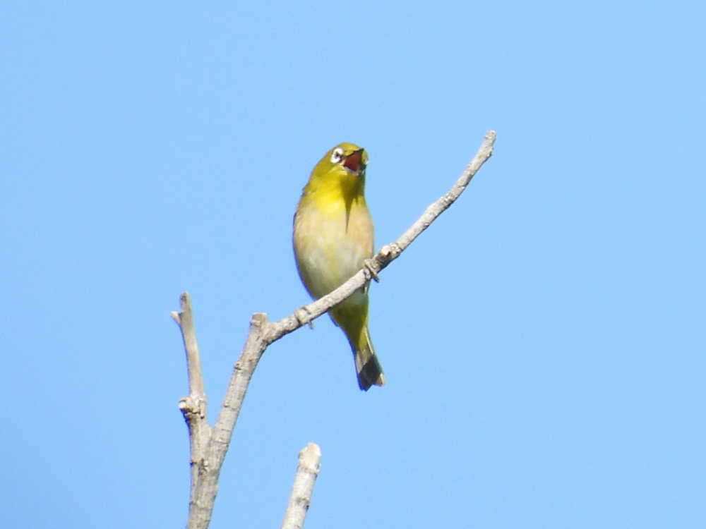 まだ本調子に戻らないので、休養日にしようと思ったのですが、 夕方に買い物がてらお寺さんを見てみました。 夏鳥はツバメ(アマツバメ?)くらいでしたが、 メジロが見えるところで囀っていました。