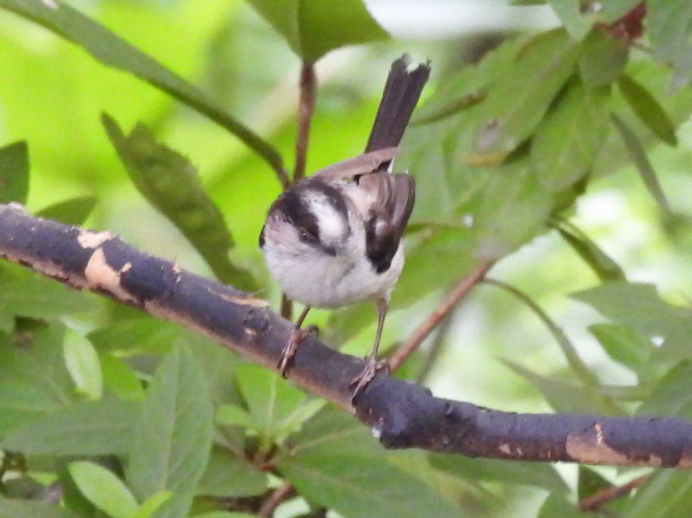 さっきのエナガの群れが花木園Aからボタン・シャクヤク・竹園を抜けて、電線にとまりました。