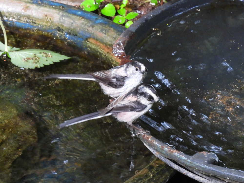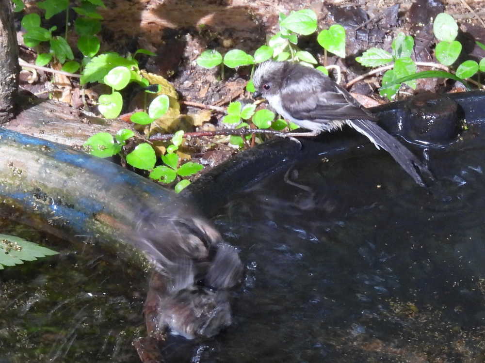 エナガの群れがやってきたのですが、1羽が水場に下りた後、