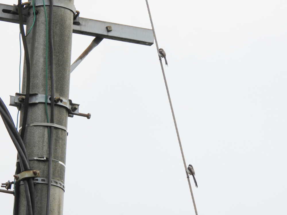 しかも、4羽は普通の横に伸びた電線にとまっていましたが、2羽は縦に伸びた電線にとまっていました。