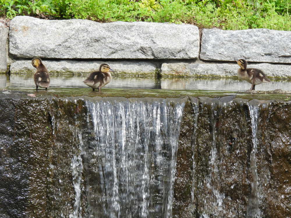 水場では2組目のアイガモの子供たちが羽繕いをしていました。