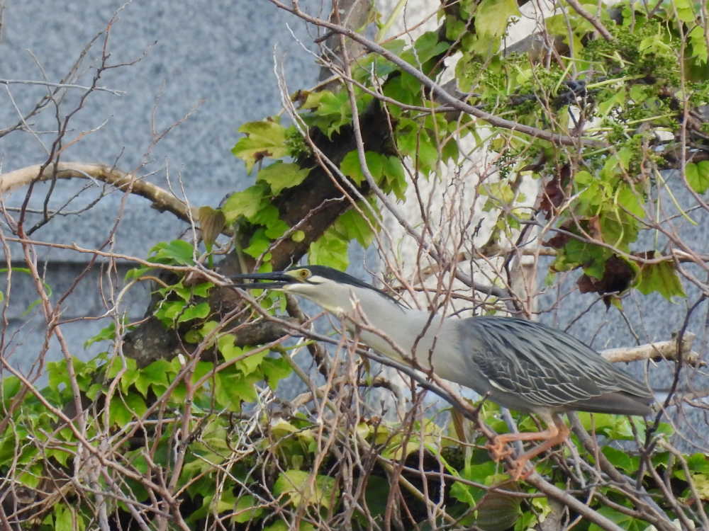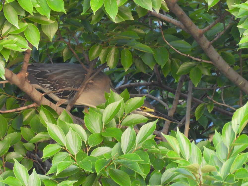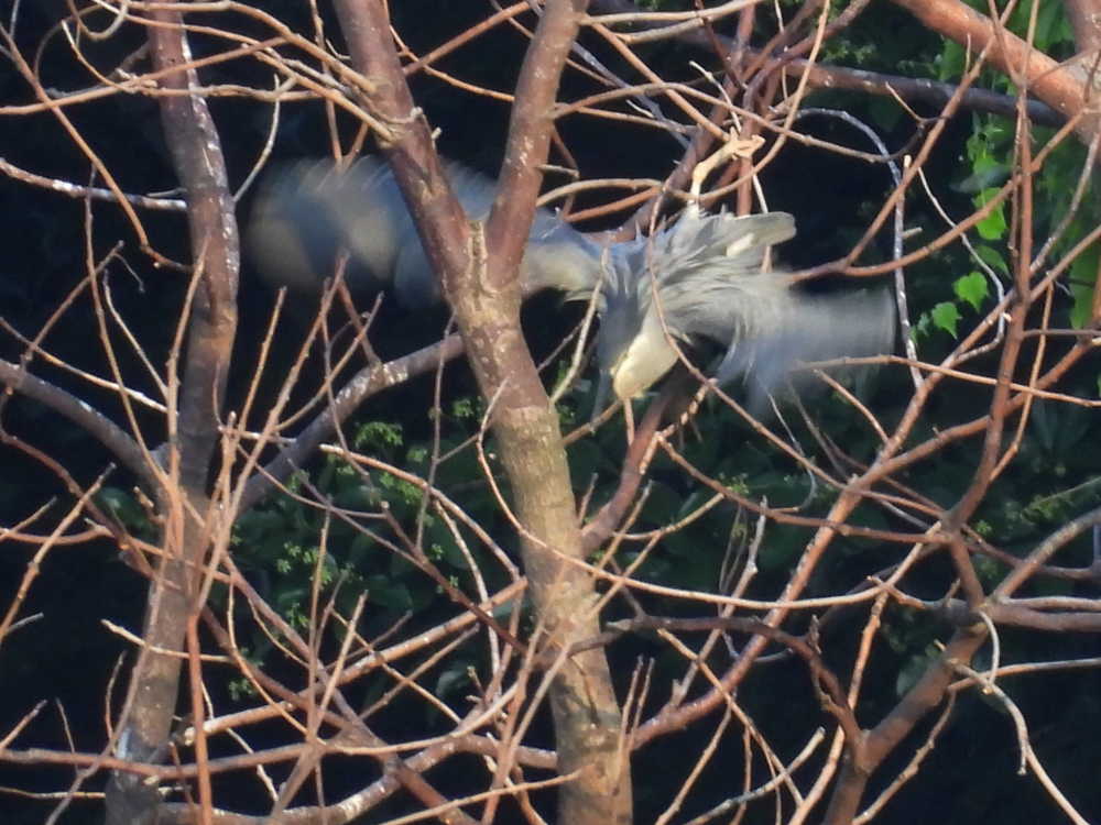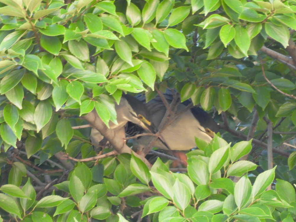 頻繁に木の枝を運びこんでいたあたりにササゴイが2羽飛び込んだので見てみると、