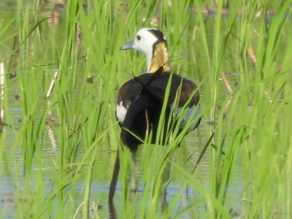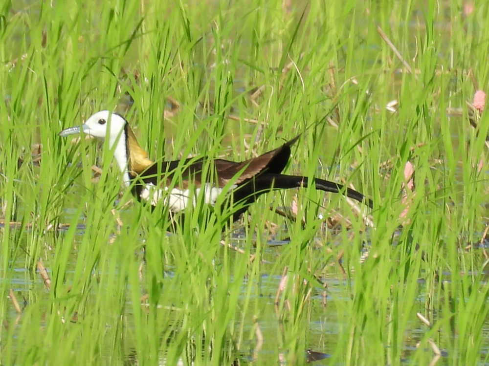 珍しい子の予感がして足を止めて遠くから観察してみると、首が金色のレンカクでした。