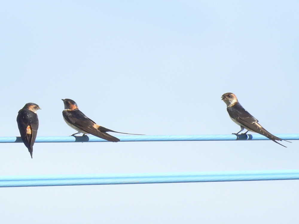 ツバメと同じく、1羽が電線にとまると、皆集まってきていました。