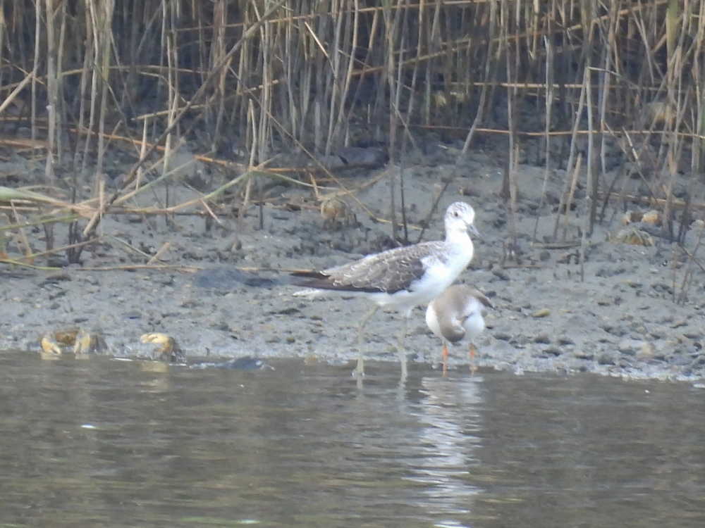 そちらの方からソリハシシギやアオアシシギが10羽ずつくらい飛んできました。
