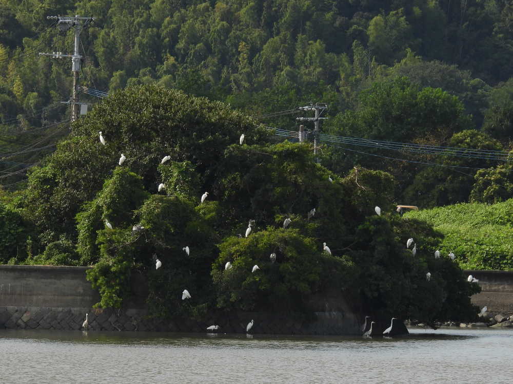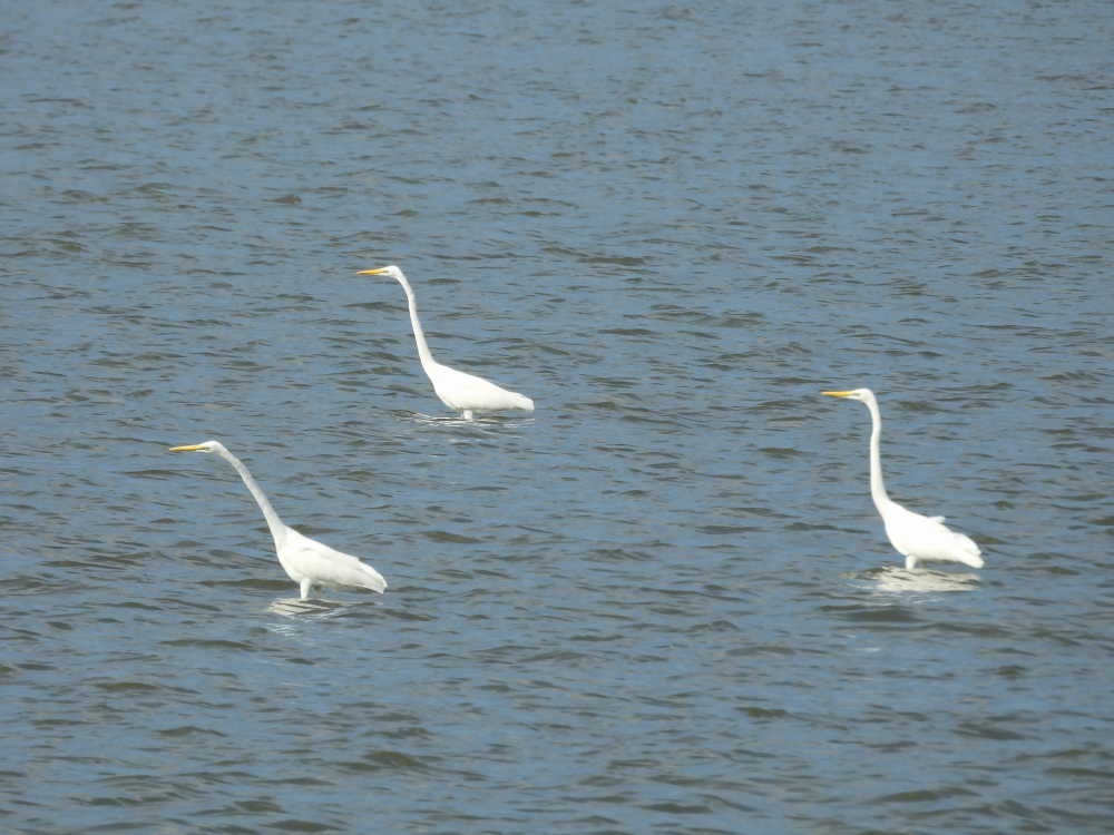 干潮時に干潟が出るところは水が増えてもダイサギやアオサギは足がつくようで、