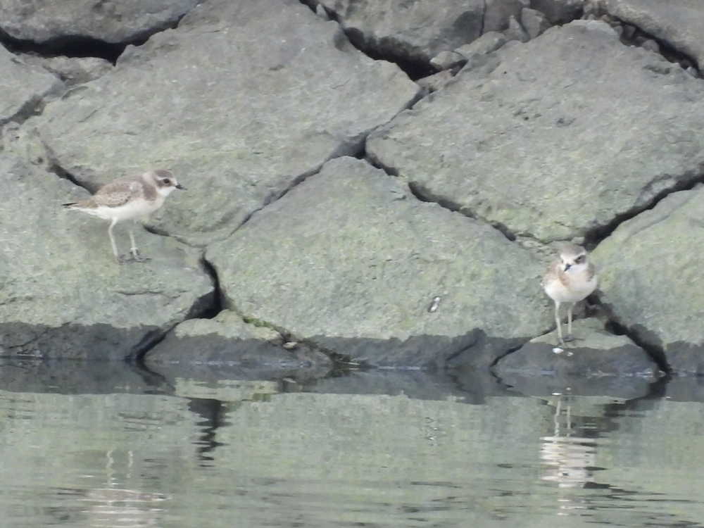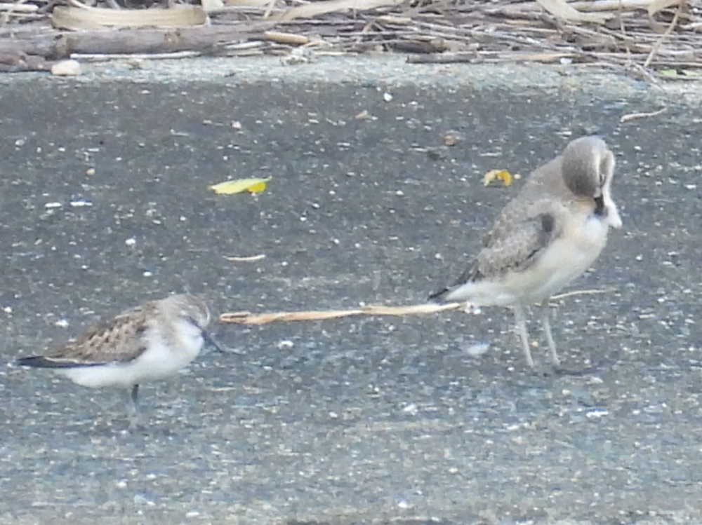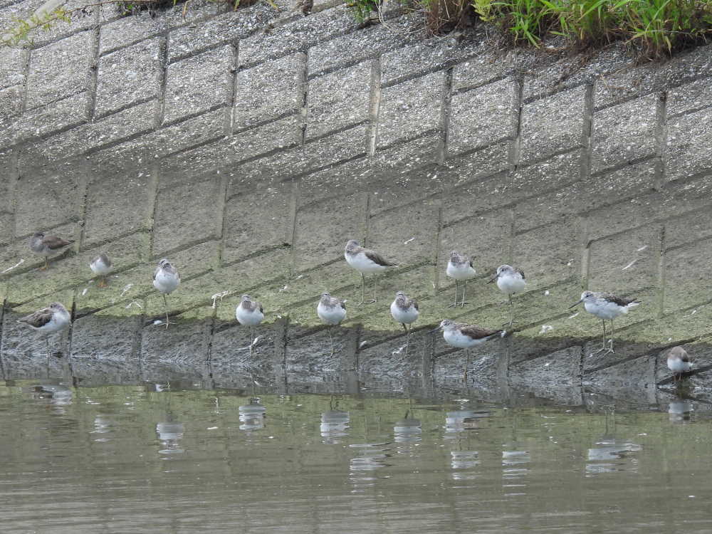 ソリハシシギ22羽、キアシシギ1羽、トウネン2羽、そしてメダイチドリ9羽が休んでいました。