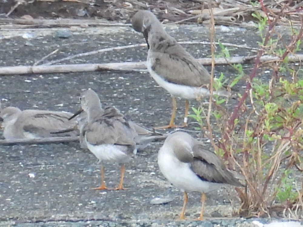 アオアシシギ13羽、キアシシギ1羽、ソリハシシギ2羽が休んでいました。