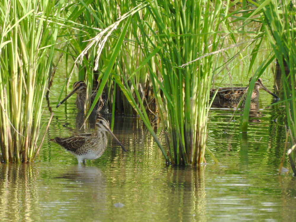 セイタカシギ6~7羽、タシギ5羽、アオアシシギ1羽がいました。