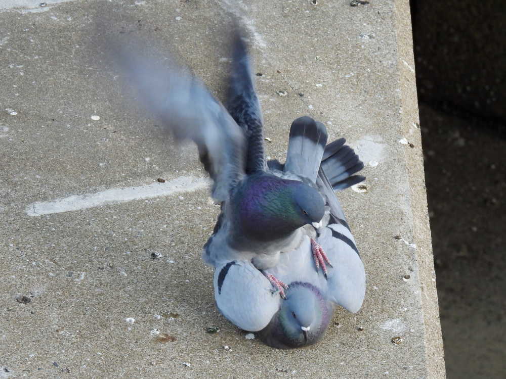 お昼の清流公園近くの那珂川にはホシハジロが数羽来ていました。 ホシハジロのメス 会社帰りに寄ってみると、ヒドリガモの群れと一緒にオカヨシガモがいることを確認できました。 オカヨシガモ 博多川の川岸ではドバトが熱愛中でした。 ドバト