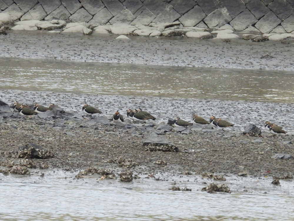 瑞梅寺川の中州にはタゲリがずらっと並んでいました。