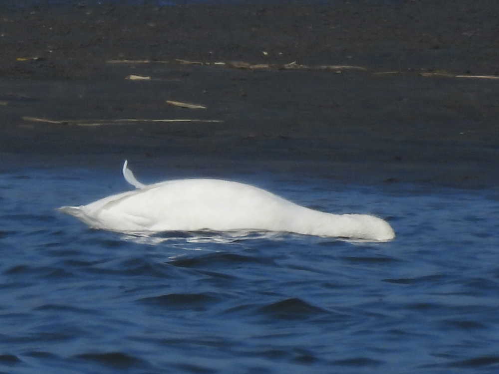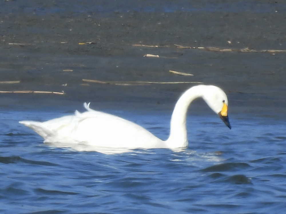 泉川の対岸付近にコハクチョウがいるのが見えました。