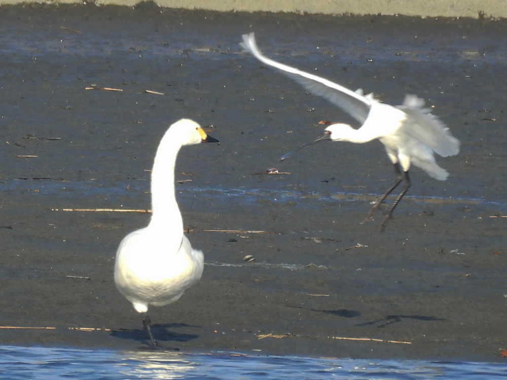 コハクチョウは白くて大きいので、お仲間と間違ったのでしょうか。