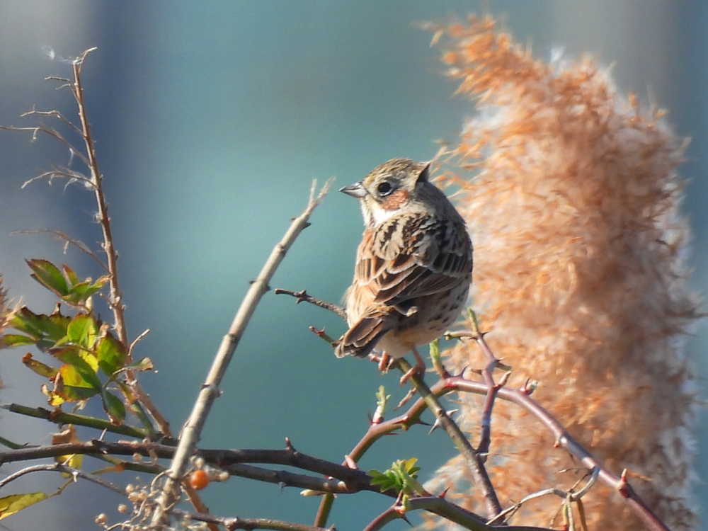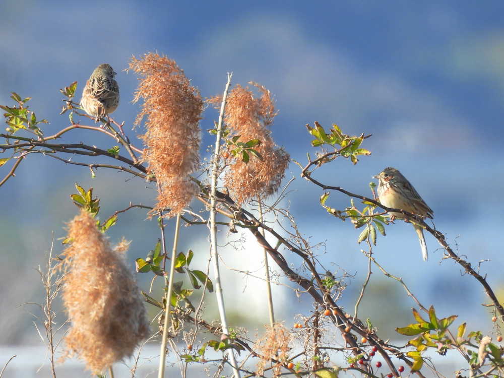 まず玄洋高校の裏手で、のんびりくつろいでいるホオアカ2羽を見つけました。