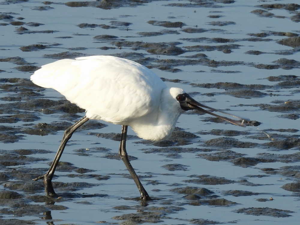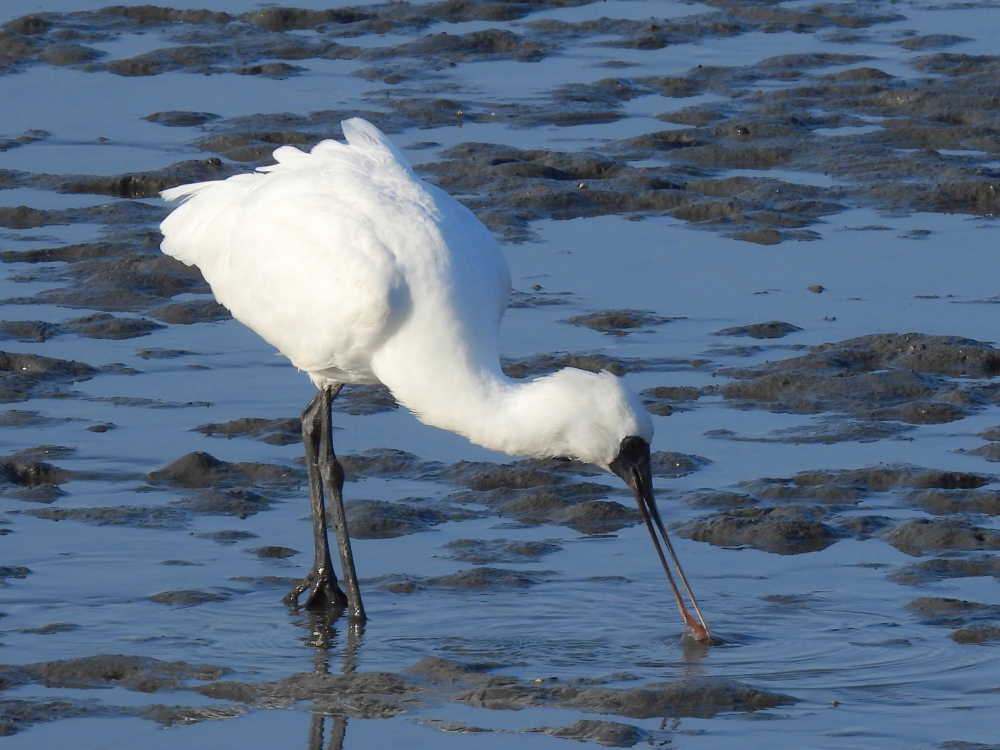 干潮の時間帯で、クロツラヘラサギが近くでお食事中でした。