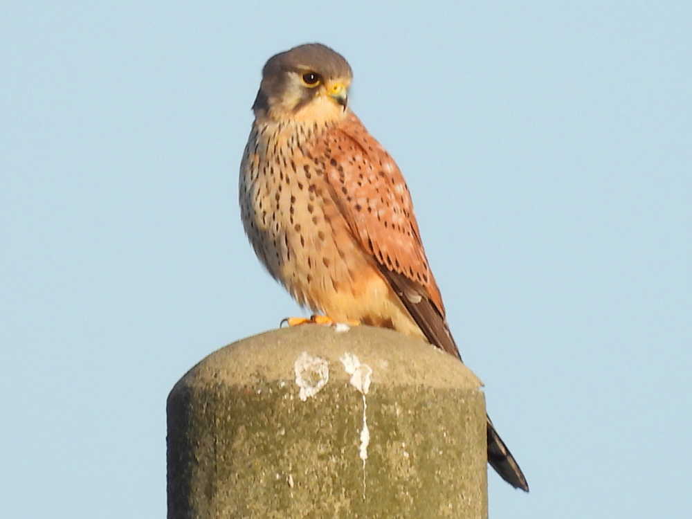 周船寺川沿いの電柱の上にはチョウゲンボウのオスがとまっていました。