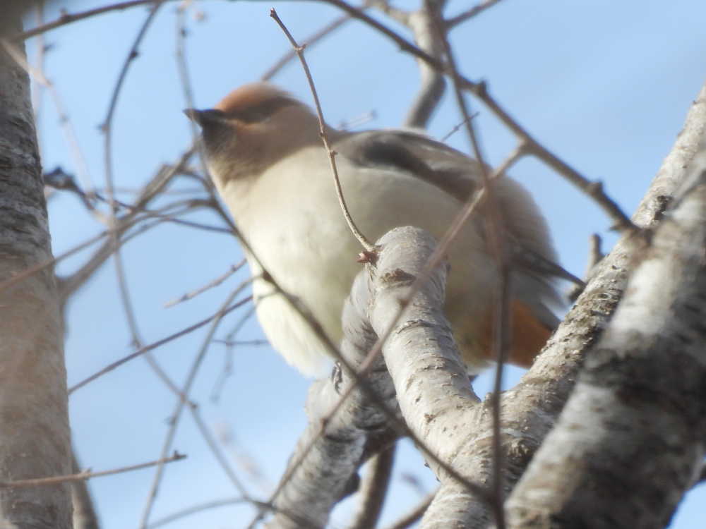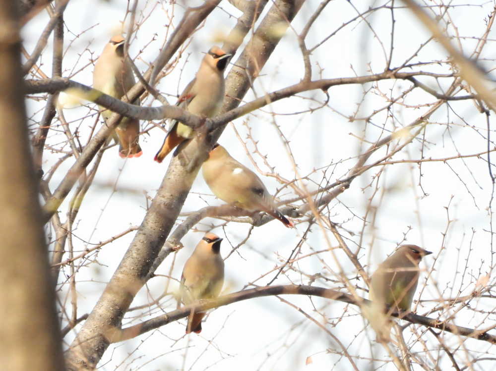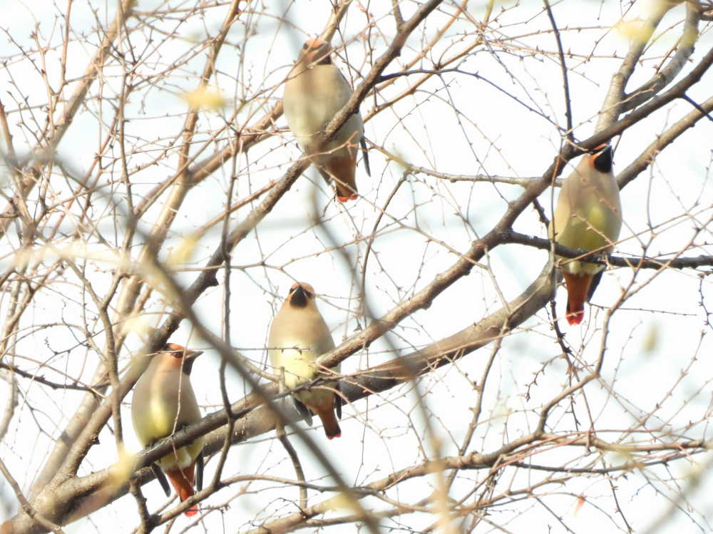 ヒレンジャクの群れは園の外側の高い木の上で、まず水場の様子を見ていて、