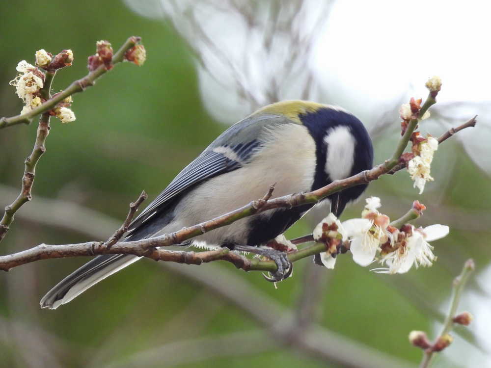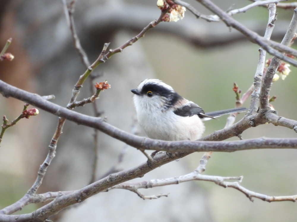 大濠公園の近くのヤドリギを見に行く途中で、梅の木にエナガとシジュウカラがいました。