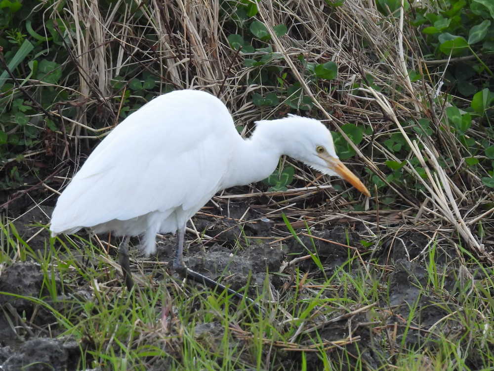 アマサギに見えました。渡ってくるにはまだ早い気がするので、越冬中の子なのでしょうか。
