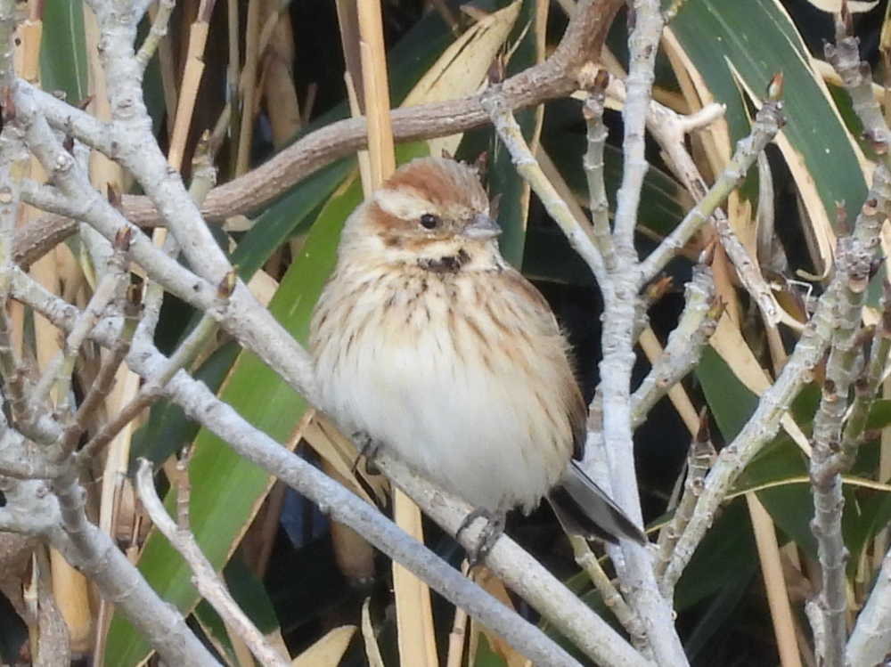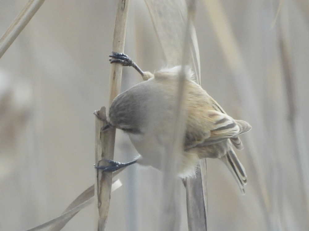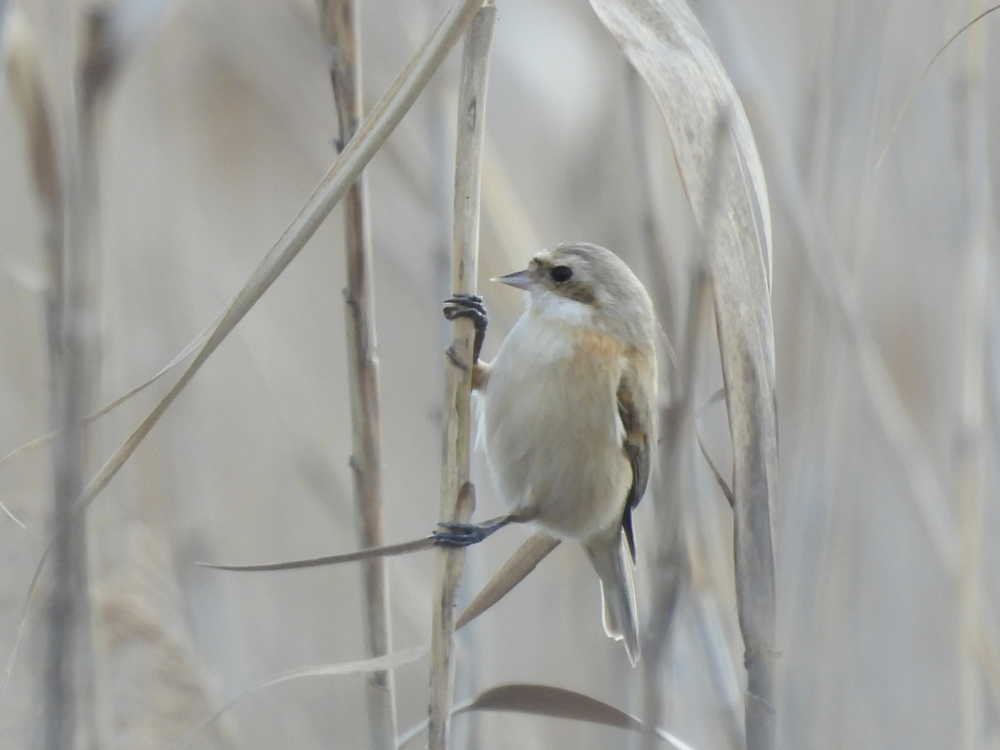 二つ池の西側の池の裏の葦原の中にツリスガラを1羽見つけることができました。