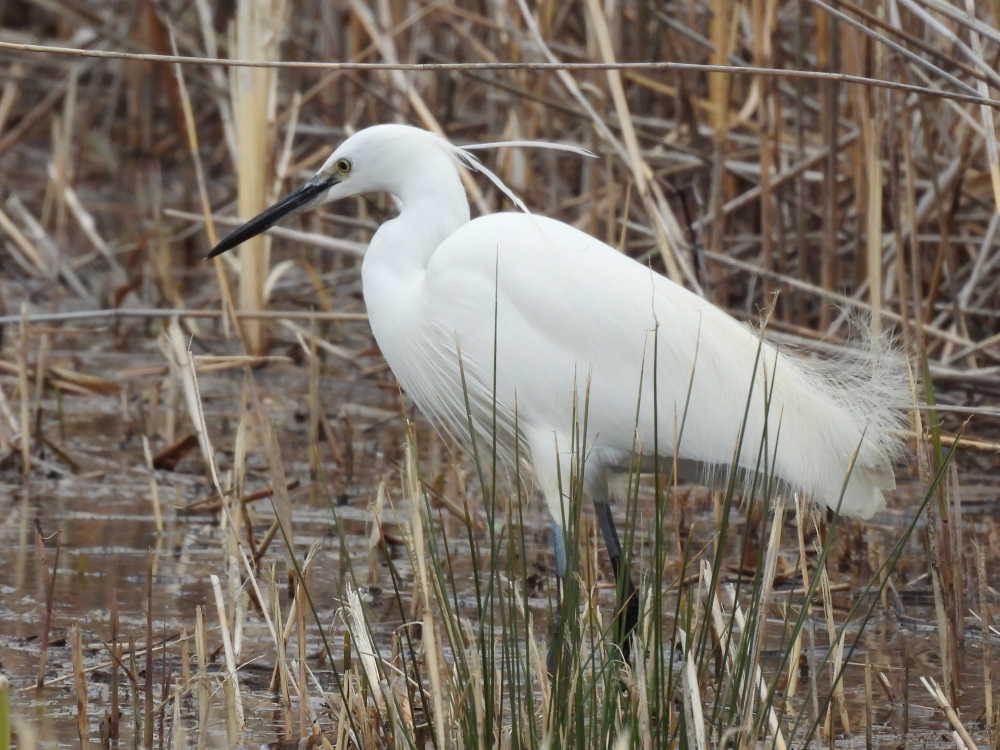 葦原のすぐ横ではコサギ4羽がお食事中でした。