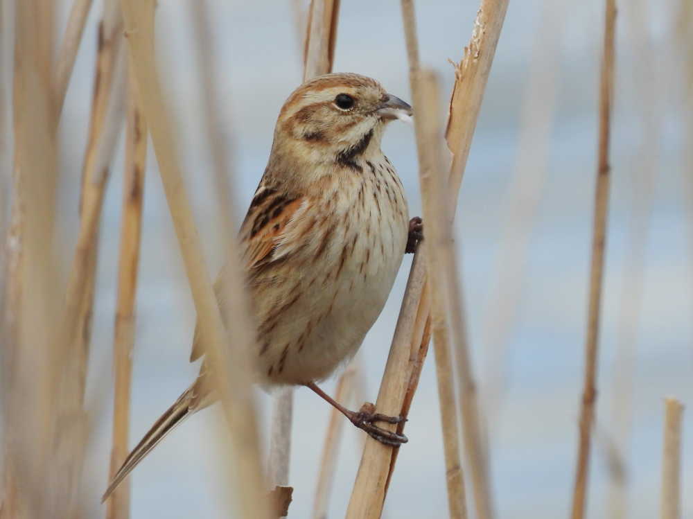 二つ池の北側の水路沿いの葦には、前回と同様にオオジュリンがいました。