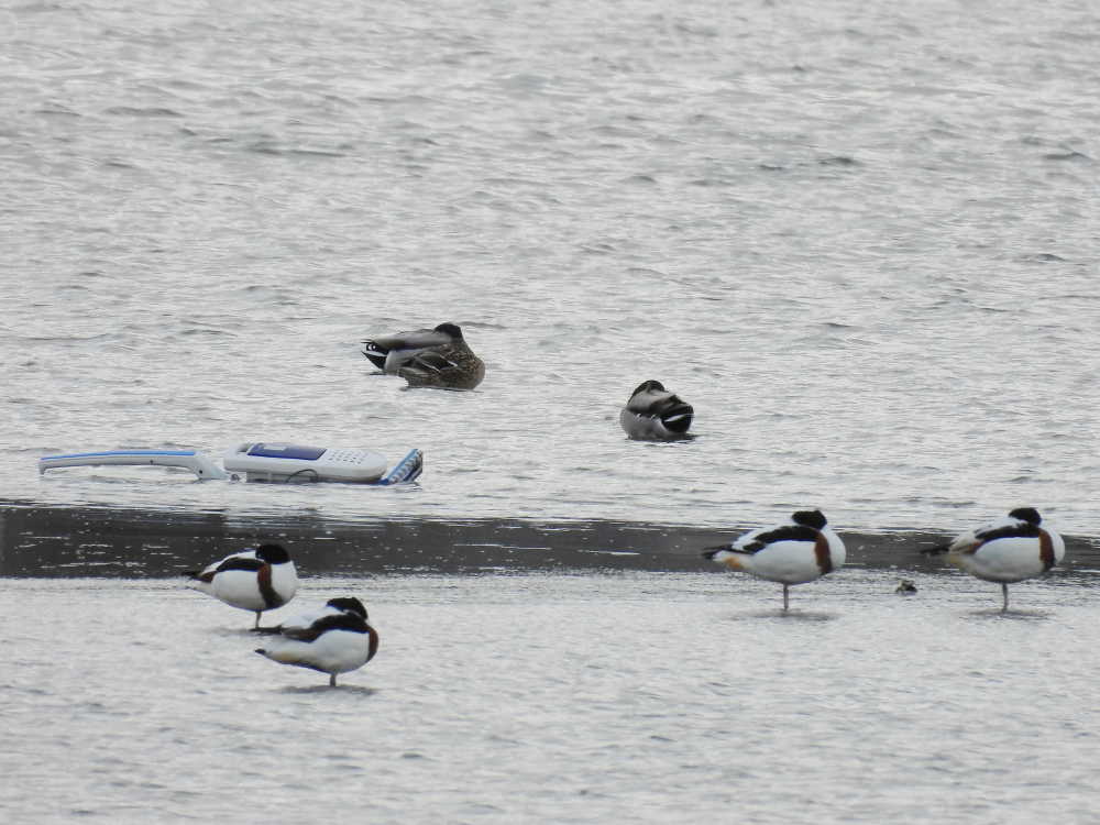 干潟はちょっとだけ出ていて、ツクシガモやヘラサギの仲間が休んでいました。