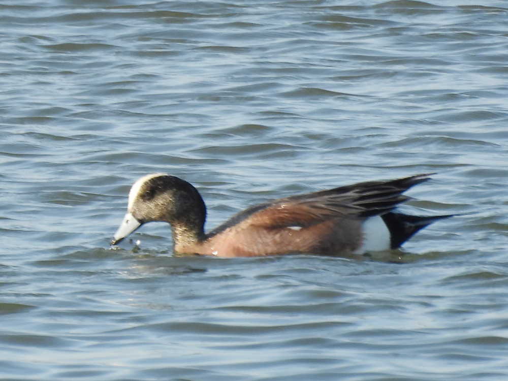 ヒドリガモの群れの中にアメリカヒドリのオスを見つけました。