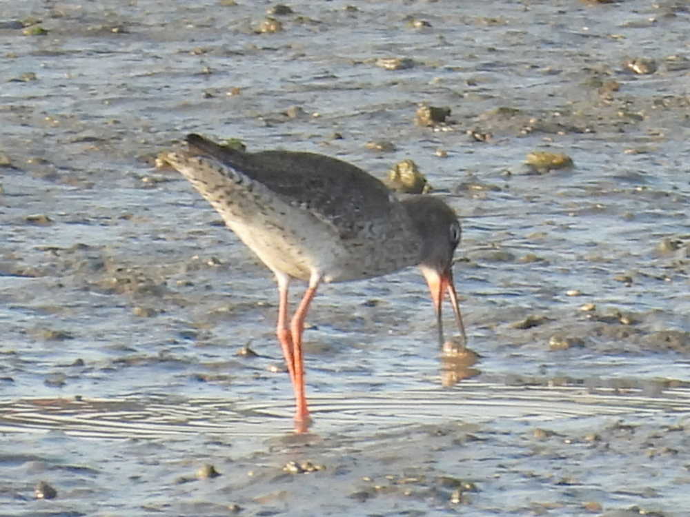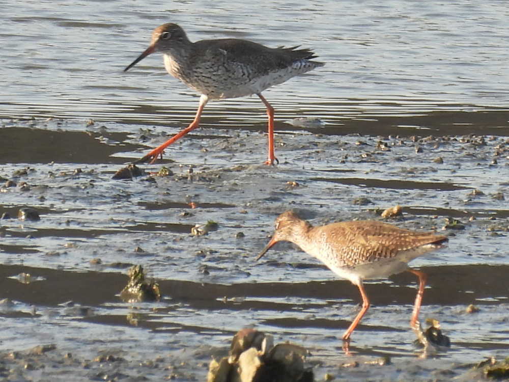 何か違和感があったので、よく見てみると、アカアシシギでした。