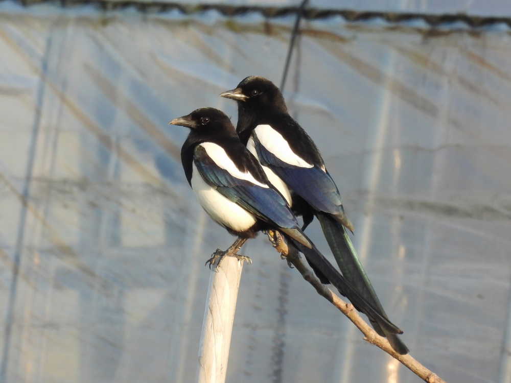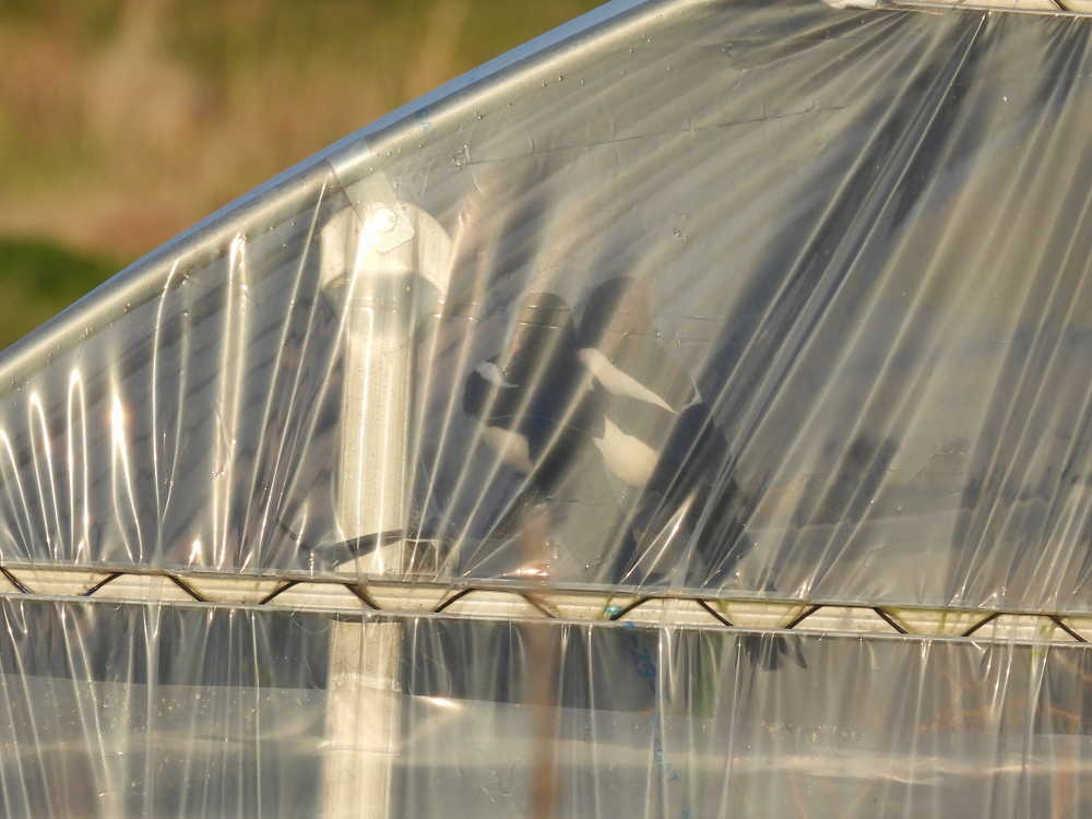 ビニールハウスの中で2羽が鳴きながら行ったり来たりして脱出できなさそうにしているので、