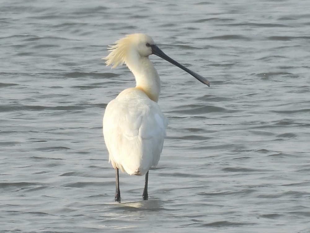 海の真ん中にヘラサギが1羽いて、目立っていました。