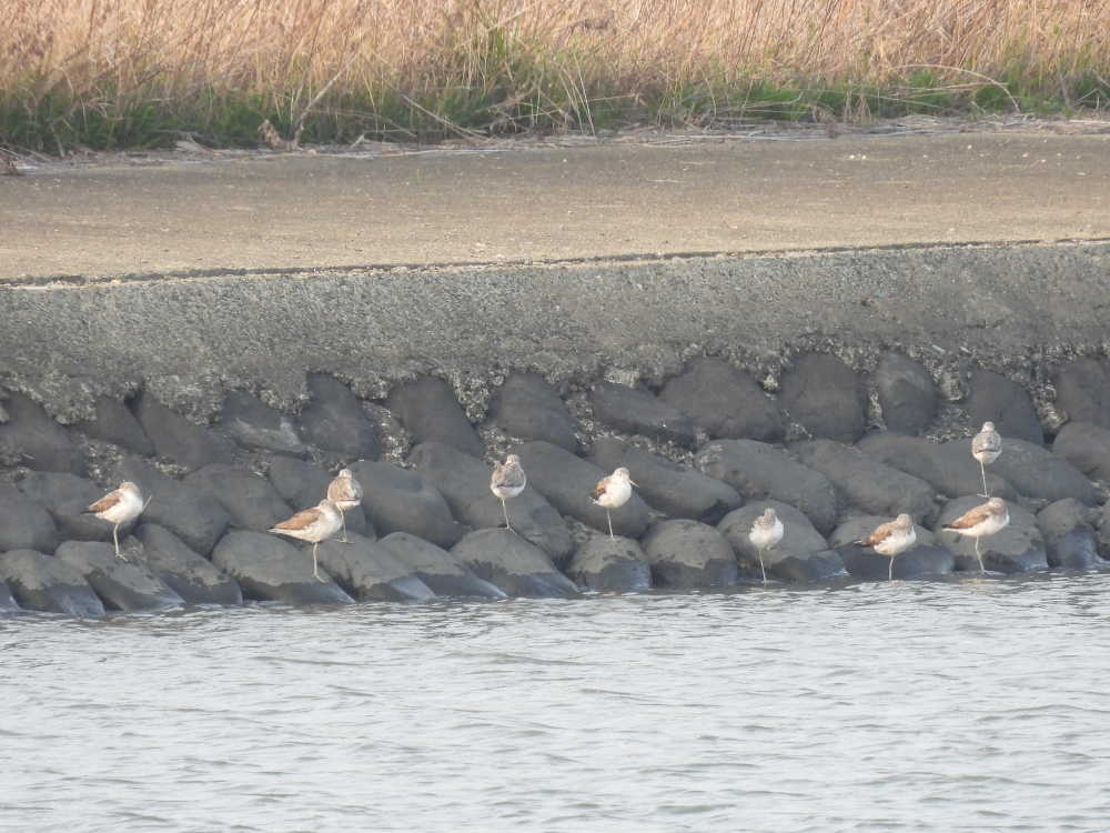 田尻橋の対岸ではアオアシシギの群れ9羽が休んでいました。