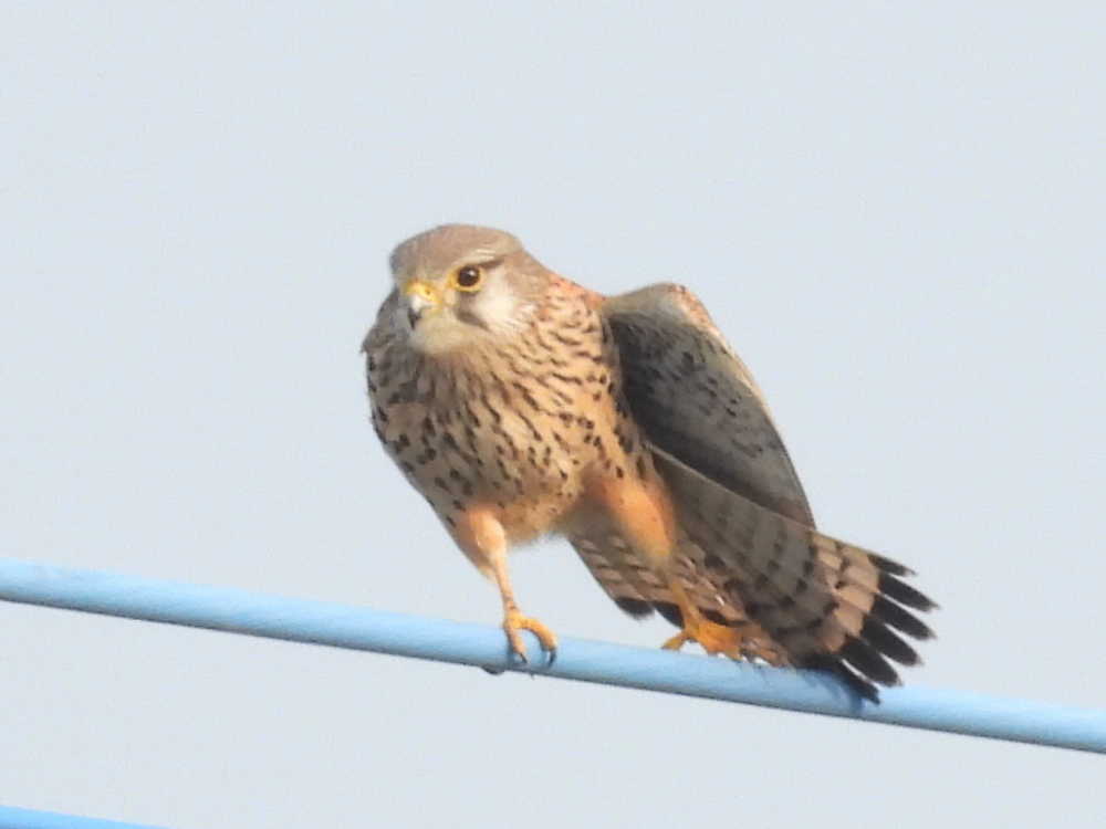 周船寺川沿いの電線にはたまに見かけるチョウゲンボウのオスがとまっていました。