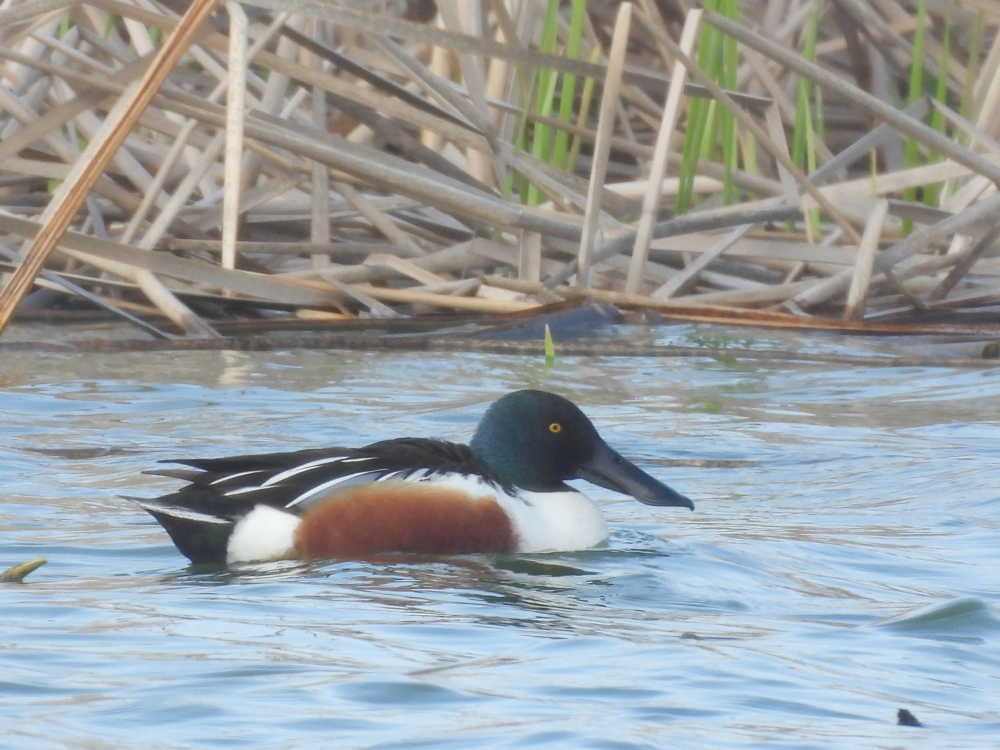 二つ池の西側の池にはハシビロガモのオスも来ていました。